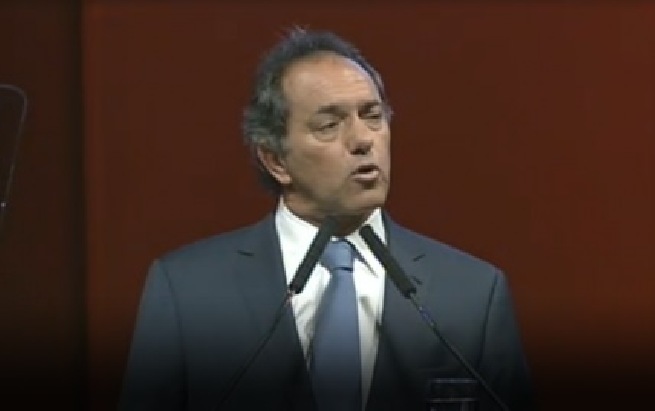 El acto que tuvo como escenario el Teatro Argentino de La Plata, el mismo utilizado por Cristina Kirchner en sus lanzamientos de los años 2007 y 2011, el gobernador Scioli expresó en esta ocasión que: "…a la hora de analizar y comparar hay que tener en cuenta las cosas como son…" expresión relacionada con otra manifestación de Scioli del viernes en donde expresaba "ya hice 4.000 kilómetros de rutas". Sobre estas declaraciones el dirigente del Partido Socialista se mostró consternado y expresó: "Mientras Scioli dice que hizo 4.000 kilómetros de rutas los vecinos de los distritos de Pergamino, Arrecifes y Ramallo cortan la ruta provincial Nº 51 ante el desastroso estado de la misma, que representa un verdadero atentado contra la integridad física y la vida de los bonaerenses, y que se reproduce en todas y cada una de las rutas de la provincia. Como otro ejemplo del relato debemos recordar que Scioli prometió en campaña agua corriente para todos los bonarenses, sin embargo en la Audiencia Pública de San Cayetano se expresó la triste realidad. ABSA es una empresa en crisis, con obras paralizadas, agua contaminada con arsénico y otras sustancias. El gobernador relata su realidad, mientras los ciudadanos vivimos otra”.